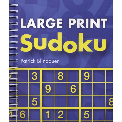 Large Print Sudoku, No more squinting to do sudoku! These sudoku puzzles are challenging, baffling, absorbing and easy to read in large print size. The object is to fill in each grid so the numbers 1 through 9 appear one time only in every row, column and 3" x 3" box. Includes 225 sudoku puzzles printed one per page. Each puzzle features large numbers and ample space for writing in the possibilities. Solutions given at back of book. 288 pages. Measures 8" x 10". Spiral bound.