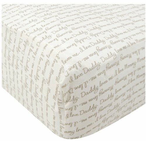 Put your baby to sleep on a sheet of loving words with this 200 thread count Koala Baby crib sheet featuring an all-over script print that says I love Mommy" and I love Daddy"! The ultra-soft, 100% cotton sheet fits a standard size 28" x 52" crib mattress and features elastic corners and deep pocket for a snug fit. Created to match other nursery products for easy color coordination, this mocha sheet adds charm and style. Read more customer reviews ...