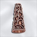 abeadstore , Handmade Bali-style cone can be used for gathering the ends of a multi-strand clasp or as a bead cap in larger designs. Fancy exterior decoration surrounds a 21x10mm cone shape. Opening in the smaller end of the cone is about 2.5mm. Solid Copper, sold individually. ...