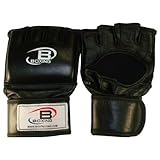 BOUT BOXING BB - 4001, Complete leather gloves with ¾" foam padding and open palm design. Wrap around Velcro strap for a tight and secure fitting. Double stitching for a durable and long lasting glove. Open palm design offers a variety of moves and versatility. Used by all MMA cage fighters around the world. (Read More)